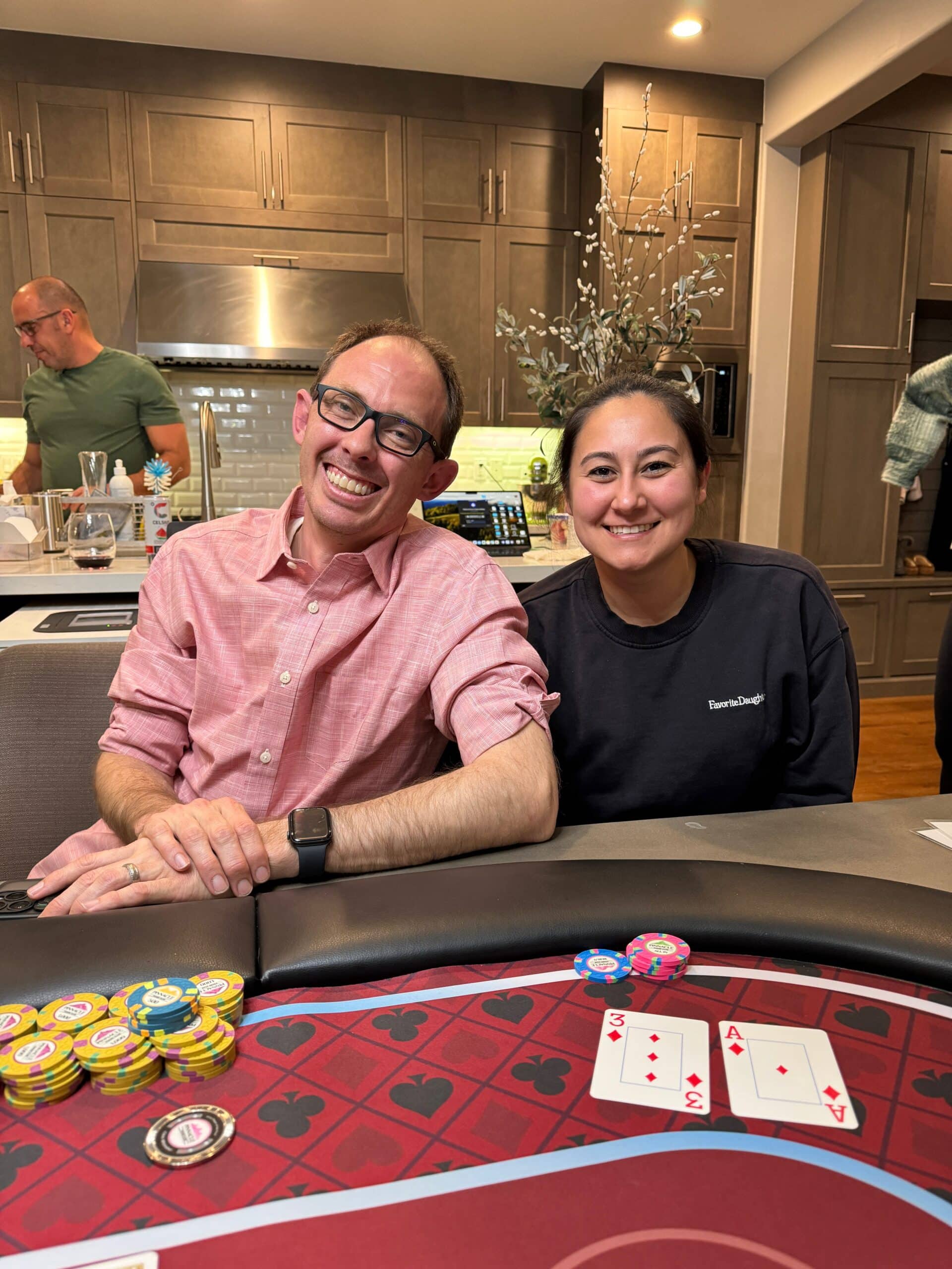 After some last-minute cancellations due to illness, four teams convened for the Pinnacle Poker Club’s first ever tag-team event. The smaller field, deeper stacks, and slower blind structure created lots of action throughout the night, while the tag-team structure led to some interesting strategic decisions: two teams allowed one hot player to play as many levels as possible, while the other two switched players more or less evenly throughout the night.