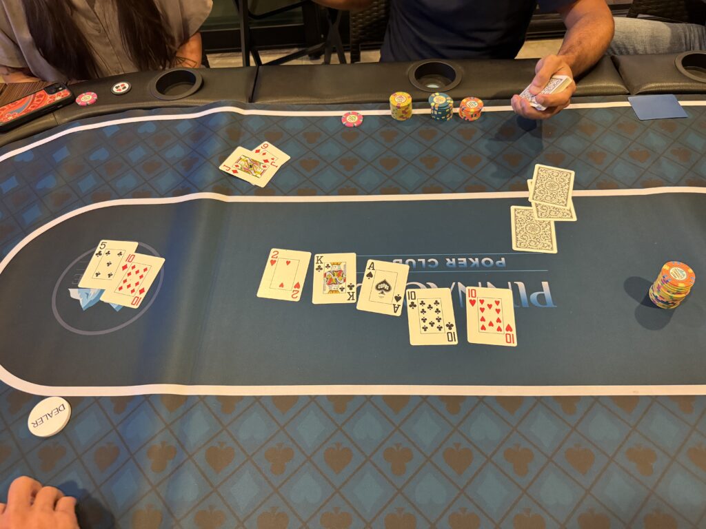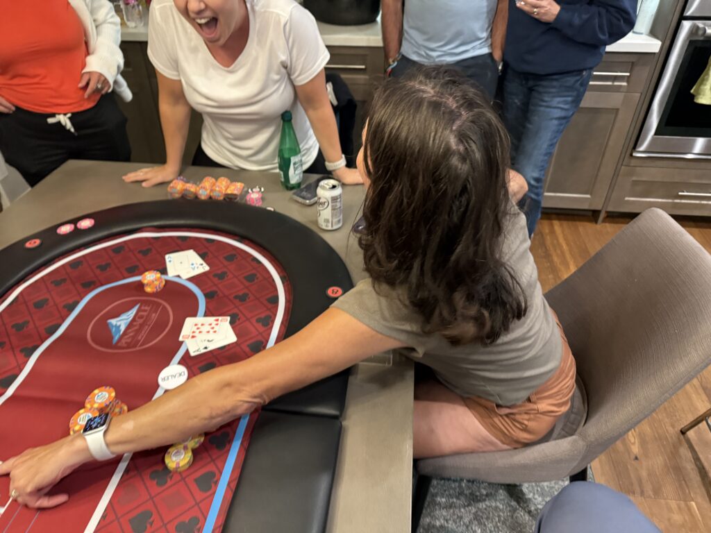 Chris jammed the river (4♣️), and Crystal called with K-Q. Chris revealed the flush, Crystal became our first bust-out of the night, and the tone was set: it was going to be a wild one.