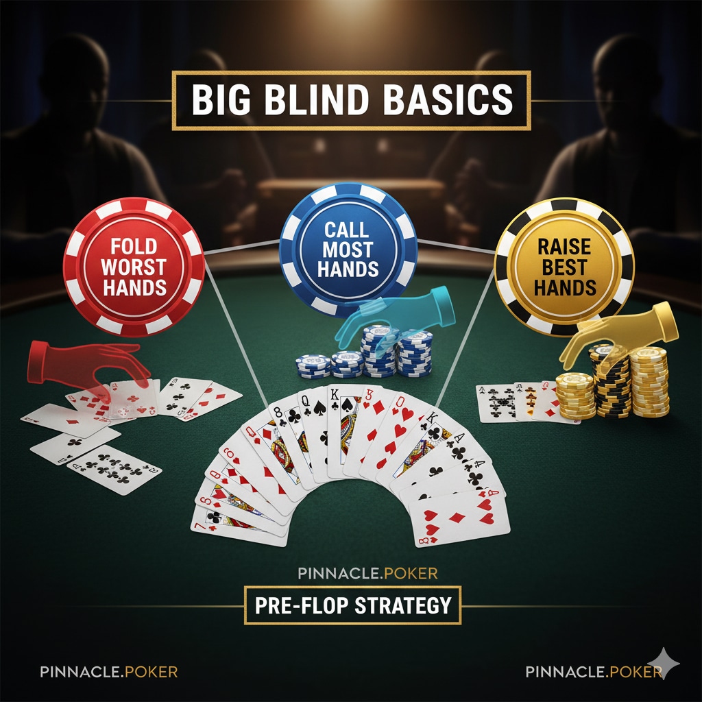 But don’t worry—there are smart ways to protect yourself, save chips, and even turn the blinds into weapons when the situation is right. This time, we’ll discuss playing from the big blind before the flop; next time, we will talk about how to play after the flop as the big blind. Then, in future tips, we will focus on small blind play.