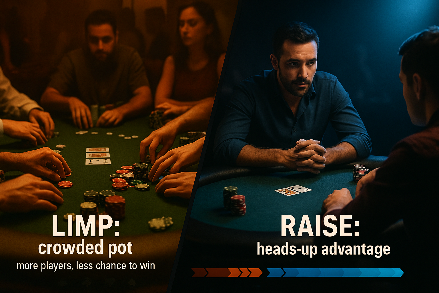 That’s why limping is sneaky-dangerous: it feels safe, but it often leads to bigger losses when your “decent” hand (like one pair) gets crushed by someone else’s better hand.